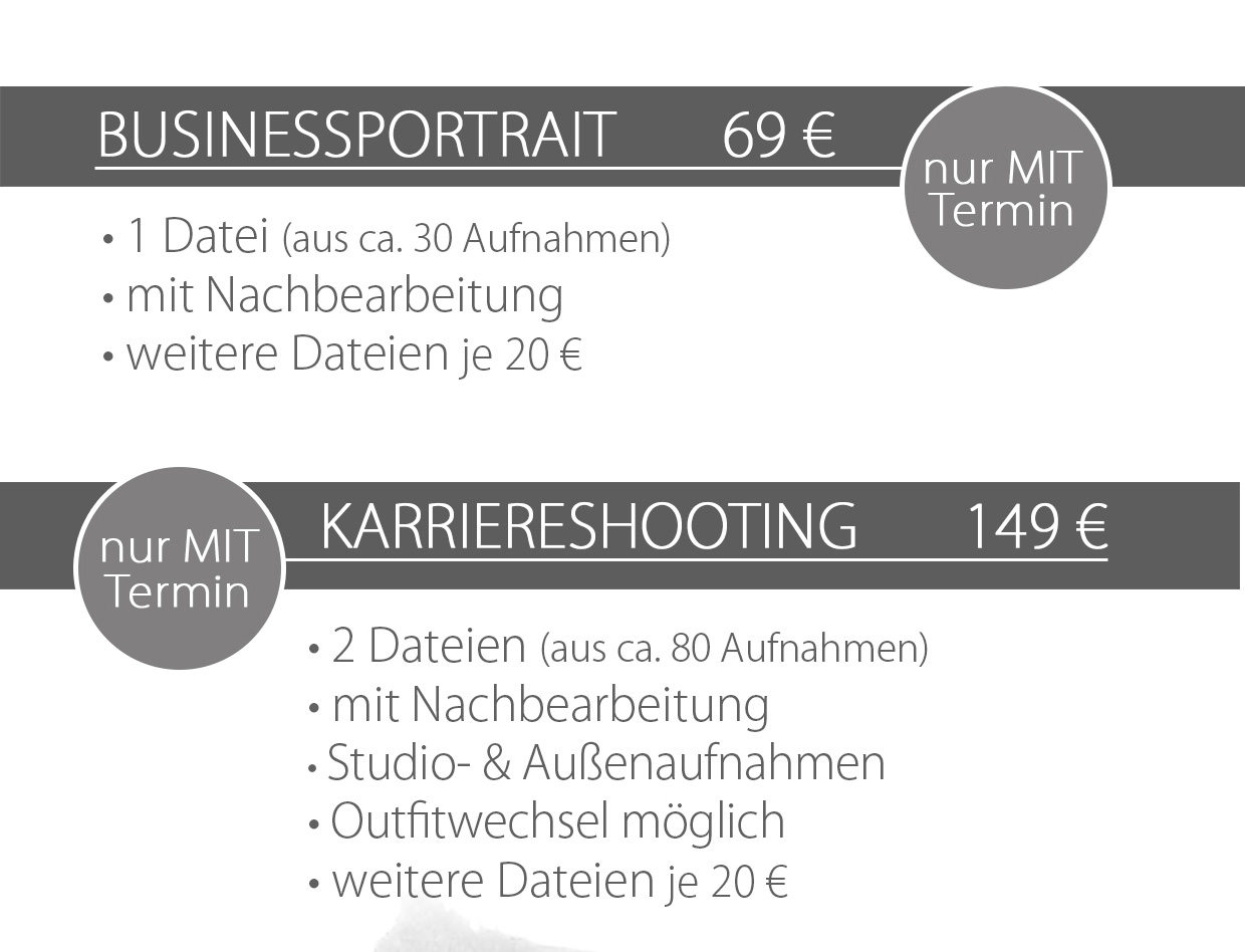 Sind Businessbilder ohne Termin möglich? Nein (bitte telefonisch, nicht per Mail, vereinbaren)